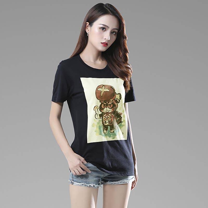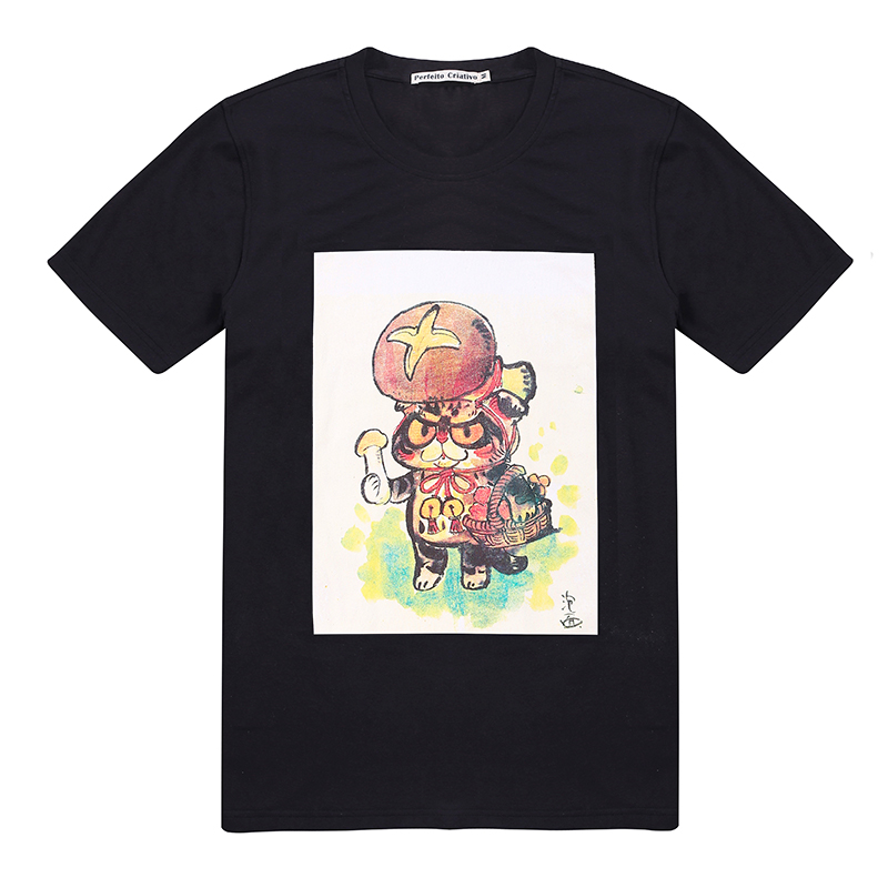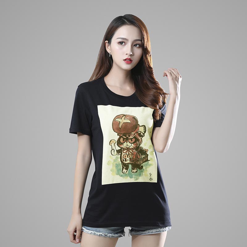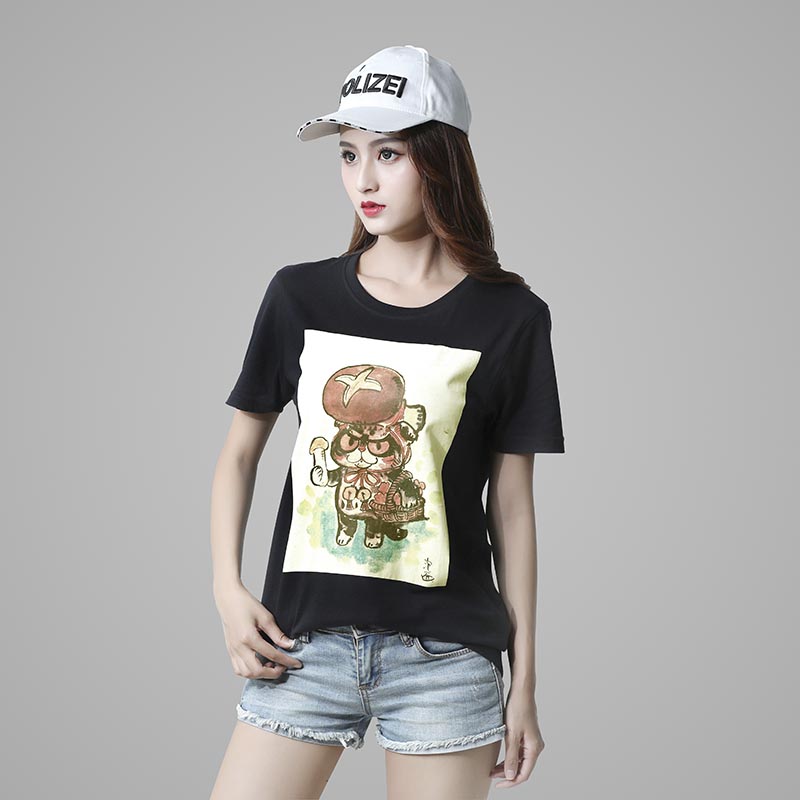 Black Cartoon Cute Print Round Neck Short Sleeve T-Shirt Men and Women Couples Same Style